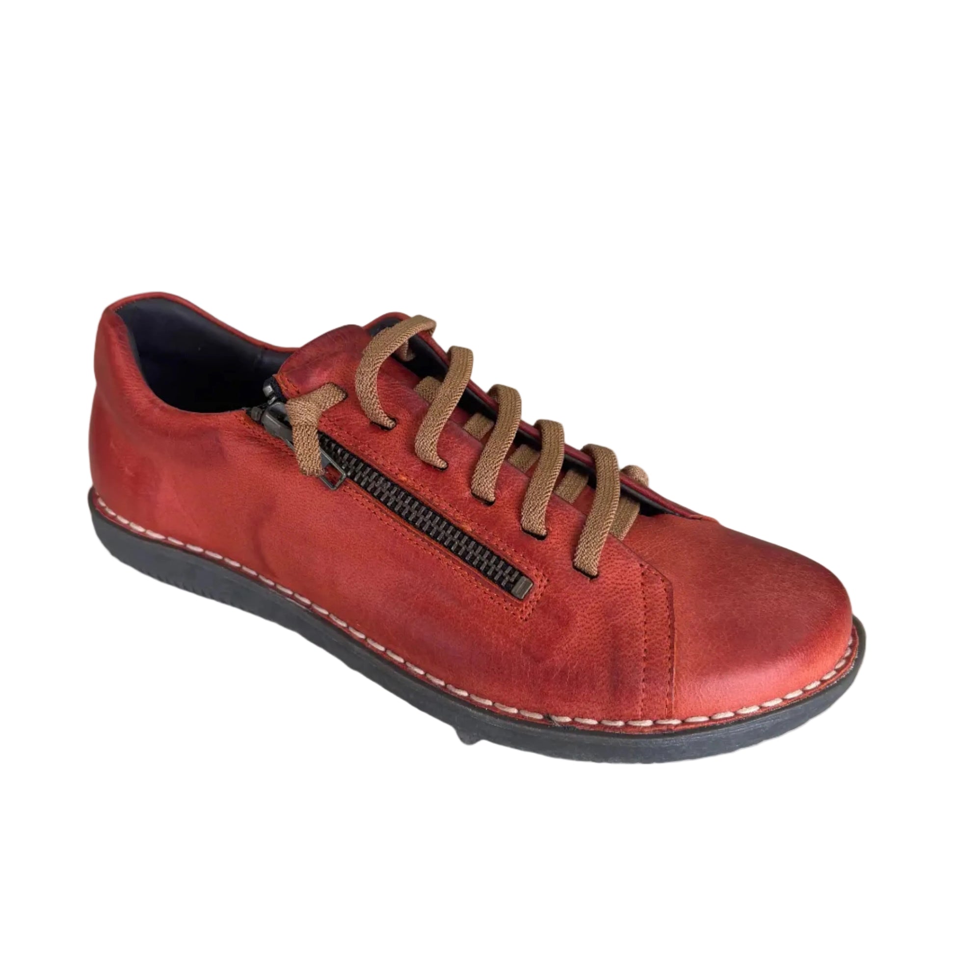 Indulge in luxury with the Maude women's flat sneaker. Made in Spain, this elegant shoe features a leather upper and lining, creating a timeless and sophisticated look. The side zip entry and elastic laces provide comfort and convenience, making it easy to slip on and off. Step out in style with this exclusive and tasteful shoe.